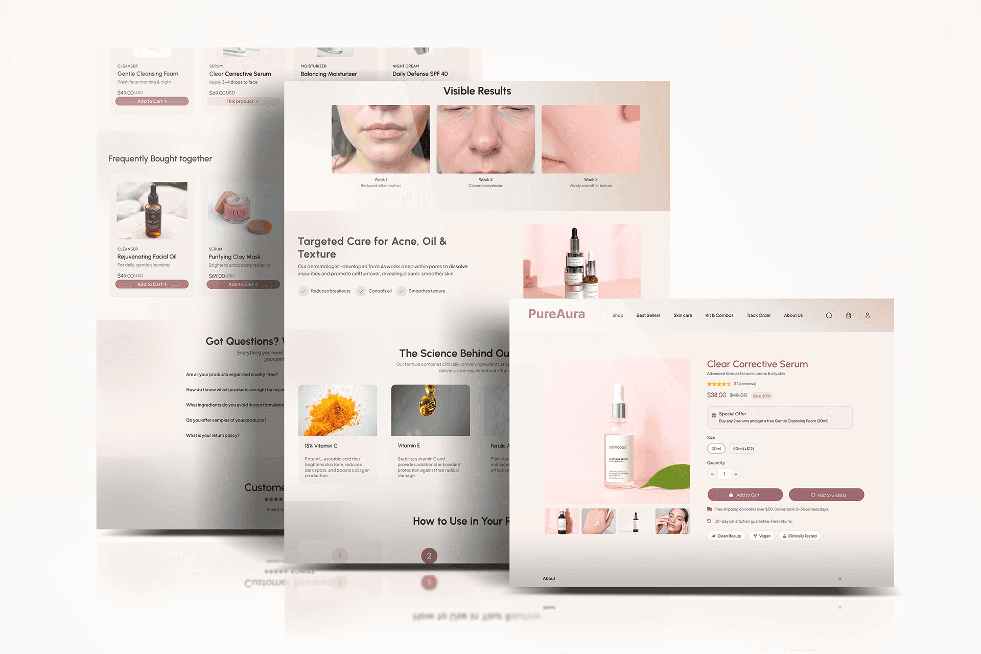 Pure Aura - Skincare E-Commerce Website UI/UX